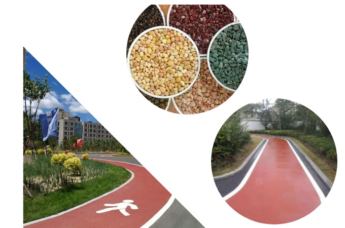 公园景观绿道、小区道路等都可以铺筑彩色防滑路面,施工24小时后即可开放交通,颜色呈现均匀靓丽,